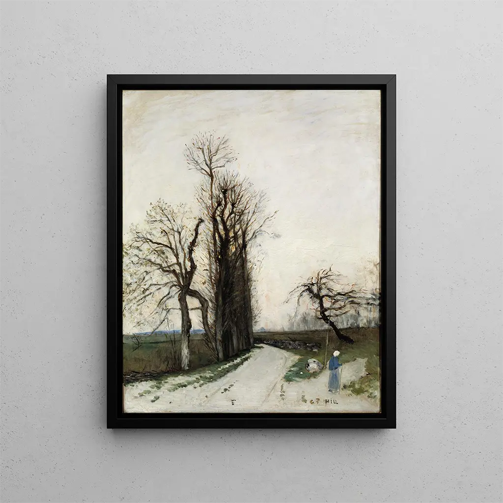 Carl Fredrik Hill, Zweedse schilder uit de 19e eeuw, wordt vaak erkend vanwege zijn vernieuwende benadering van het landschap. Opgevoed in een artistieke omgeving, werd hij beïnvloed door de grote meesters van zijn tijd, terwijl hij een eigen stijl ontwikkelde. Hill wist elementen van de natuur in zijn werken te integreren, terwijl hij thema's van eenzaamheid en contemplatie verkende. Zijn passie voor schilderen bracht hem op reizen door Europa, waar hij werd blootgesteld aan diverse artistieke tradities. Ondanks de persoonlijke uitdagingen die hij ondervond, waaronder mentale gezondheidsproblemen, blijft zijn werk resoneren met generaties kunstenaars en kunstliefhebbers. "Herfst" is een van zijn meest iconische creaties, die niet alleen zijn talent illustreert