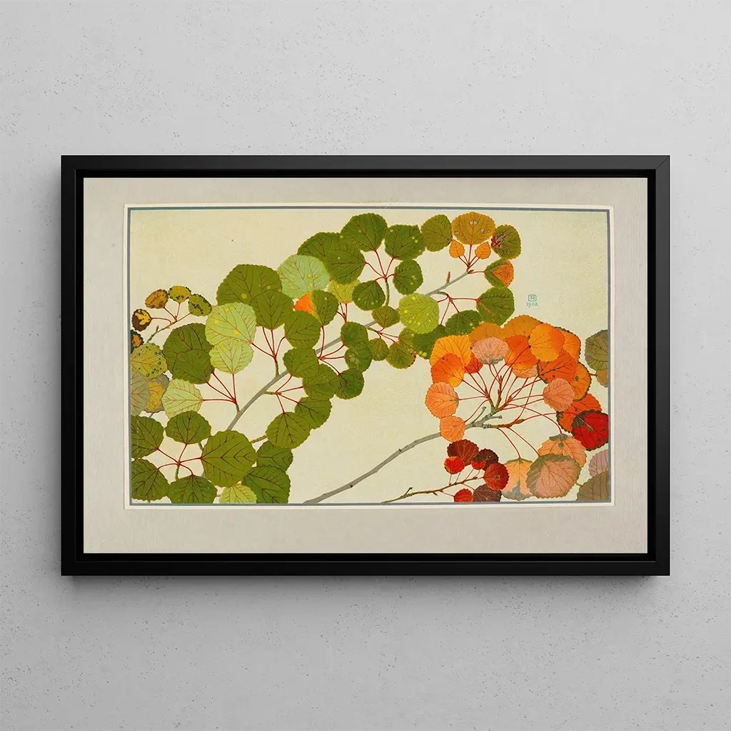 De Feuilles d'automne van Philippe Robert vangen de essentie van het seizoen met een levendig palet van rood, oranje en geel. Elke blad lijkt te vibreren onder het gouden licht van de ondergaande zon, waardoor een warme en melancholische sfeer ontstaat. De techniek van de kunstenaar, die impressionisme en realisme combineert, stelt kijkers in staat de lichte bries te voelen die deze overgang van zomer naar winter begeleidt. De minutieuze details van de bladeren, bijna tastbaar, nodigen uit tot diepe contemplatie en een verbinding met de natuur, waardoor deze kunstdruk een echt meesterwerk is om te bewonderen.