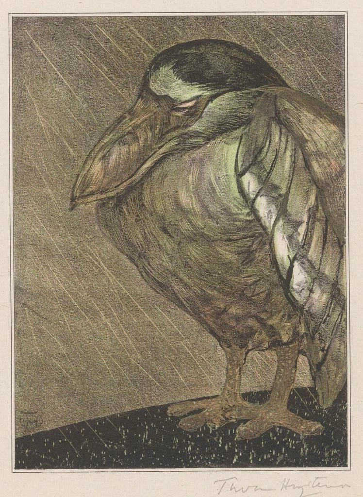 Schilderij Heron met snavel in boot onder de regen - Theo van Hoytema | Kunstdruk