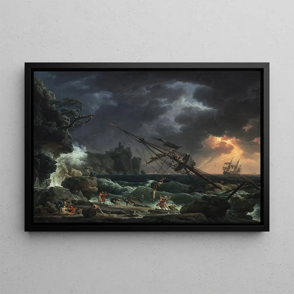 Le Naufrage : een maritieme tragedie verheven door het licht De kunstdruk van het schilderij "Le Naufrage" van Claude-Joseph Vernet dompelt ons onder in een dramatisch tafereel waarin de woeste zee botst op een schip in nood. De donkere, turbulente kleuren van de hemel contrasteren met de lichtstralen die de golven verlichten, waardoor een sfeer ontstaat die zowel tragisch als subliem is. Vernet, meester in maritieme landschappen, slaagt erin de intensiteit van het moment vast te leggen, waardoor de wanhoop van de zeelieden tegenover de kracht van de natuur voelbaar wordt. Dit doek, rijk aan details en emoties, nodigt de kijker uit om de spanning van deze maritieme scène te voelen. Claude-Joseph Vernet : de kunstenaar van stormen en maritieme landschappen Claude-Joseph Vernet, actief in de achttiende eeuw, is beroemd om zijn weergaven van de zee en stormen. Geïnspireerd door de rococo-beweging, wist hij een virtuoze techniek te combineren met een dramatische gevoeligheid, waardoor hij een van de meest gerespecteerde maritieme schilders van zijn tijd werd. Zijn werken, vaak besteld door aristocraten, getuigen van een fascinatie voor de zee en haar gevaren, en weerspiegelen ook de zorgen van zijn tijd over navigatie en maritiem handel. "Le Naufrage" past perfect binnen deze traditie en illustreert de uitdagingen waarmee zeelieden werden geconfronteerd. Een decoratieve aanwinst met vele voordelen Deze kunstdruk van het schilderij "Le Naufrage" is een boeiend accent voor uw interieurdecoratie, of het nu in een woonkamer, kantoor of tentoonstellingsruimte is. De kwaliteit van de afdruk en de aandacht voor details garanderen een trouwheid aan het originele werk, terwijl het een dramatische dimensie aan uw ruimte toevoegt. Door deze doek in uw inrichting te integreren, creëert u een focuspunt dat interesse en gesprek oproept, en tegelijkertijd eer betoont aan het artistieke erfgoed van Claude-Joseph Vernet. Dit schilderij, met zijn visuele intensiteit, transformeert elke omgeving in een plek van emotie en reflectie.