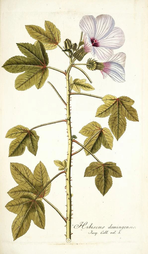 Schilderij Hibiscus domingensis - Nikolaus Joseph Freiherr von Jacquin | Kunstdruk