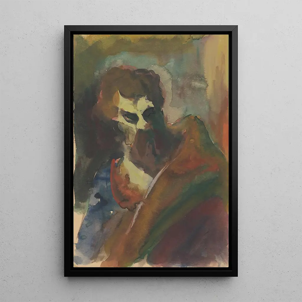 La reproduction de la Tête d'homme de Jan Novák nous plonge dans un univers où l'expression faciale devient le reflet d'émotions profondes. Cette œuvre captivante se distingue par sa palette de couleurs terreuses, qui évoque une certaine mélancolie. La technique du portrait, mêlant réalisme et abstraction, crée une atmosphère intrigante, comme si le personnage représenté était sur le point de nous révéler ses secrets. Les détails minutieux des traits du visage, associés à des ombres délicates, donnent vie à cette tête, invitant le spectateur à s'interroger sur l'histoire et les pensées de cet homme.