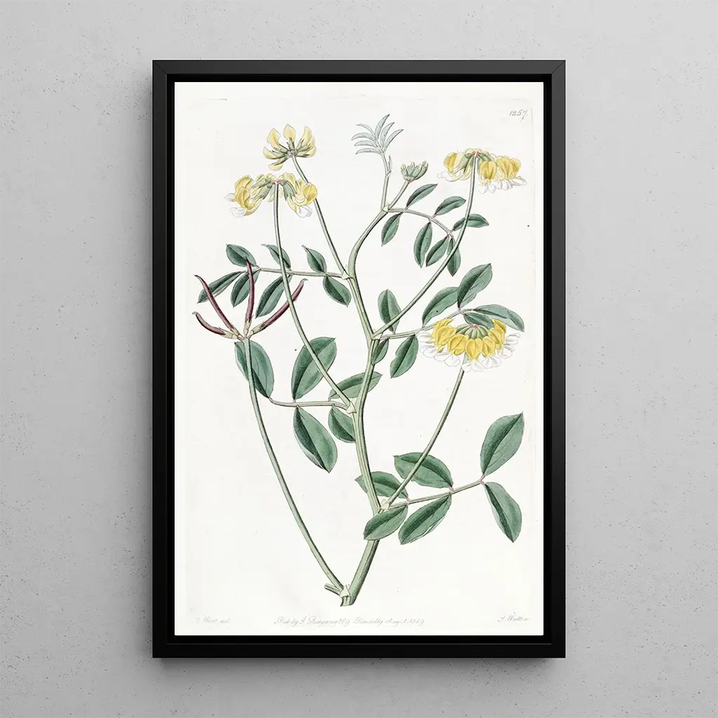 De kunstdruk van Hosackia bicolore is een ideaal decoratief stuk om je interieur te verfraaien, of het nu in een woonkamer, kantoor of slaapkamer is. De afdrukkwaliteit garandeert een opmerkelijke fideliteit aan de kleuren en details van het originele werk, terwijl het een vleugje frisheid en natuur aan je ruimte toevoegt. De esthetische aantrekkingskracht van dit doek maakt het een perfecte keuze voor wie een serene en inspirerende sfeer wil creëren, en tegelijkertijd de schoonheid van bloemen viert door middel van kunst.