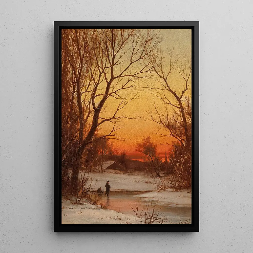 Kunstdruk | Hout en vijver bij zonsondergang - Bruce Crane