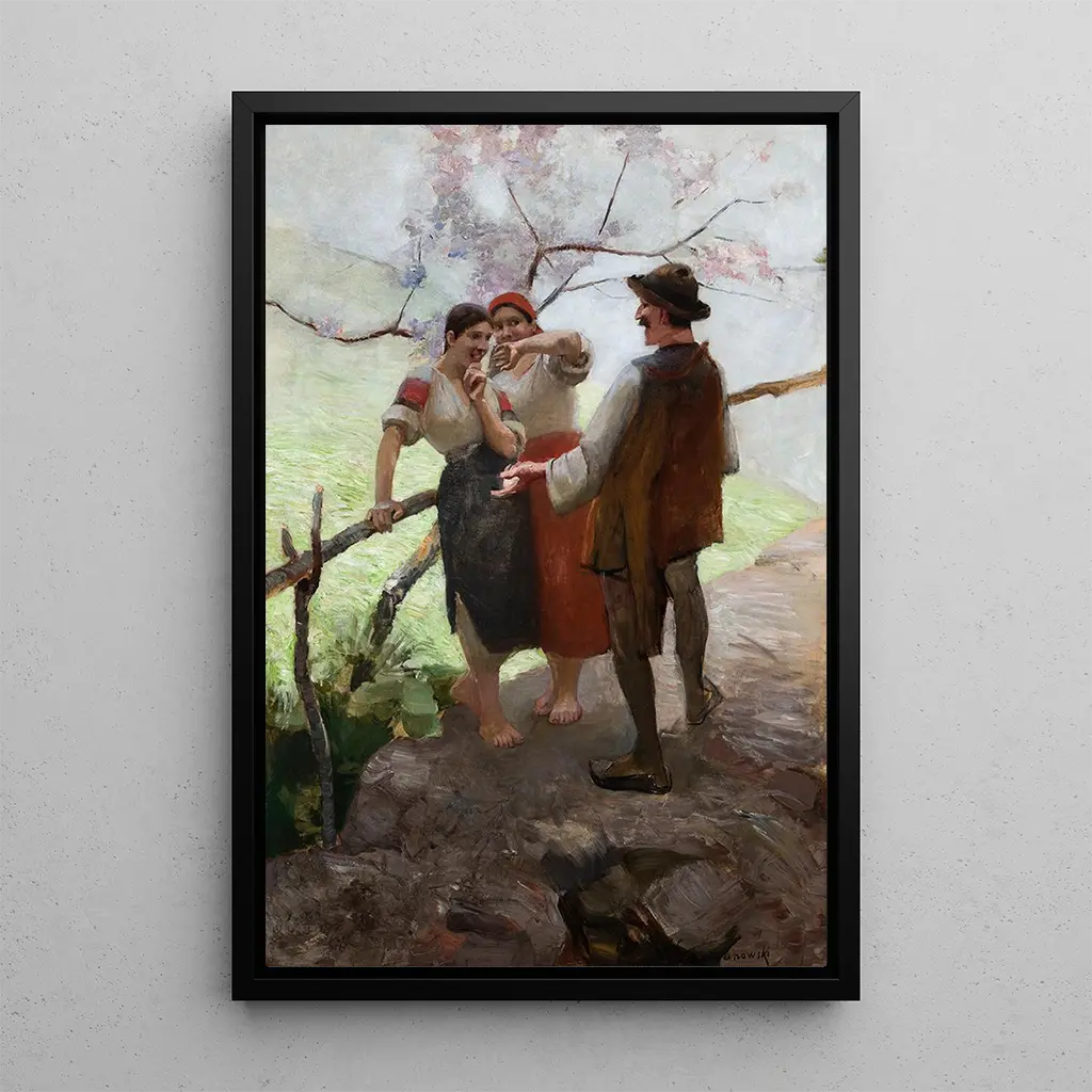 De kunstdruk van "Houtsoules en conversation" van Wacław Szymanowski roept een intieme en mysterieuze scène op. De personages, verdiept in een stille discussie, worden weergegeven met opmerkelijke finesse. De warme kleuren en delicate nuances creëren een rustgevende sfeer die uitnodigt tot reflectie. Szymanowski, met zijn unieke stijl, slaagt erin de essentie van menselijke uitwisselingen vast te leggen, waardoor elk detail betekenis krijgt. Dit werk, zowel eenvoudig als diepgaand, transporteert de kijker naar een wereld van contemplatie en emotie.