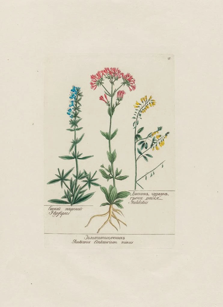 Schilderij Hysope Gentiane Centaurium minus Mélilot - Petr Martynovich Gofman | Kunstdruk
