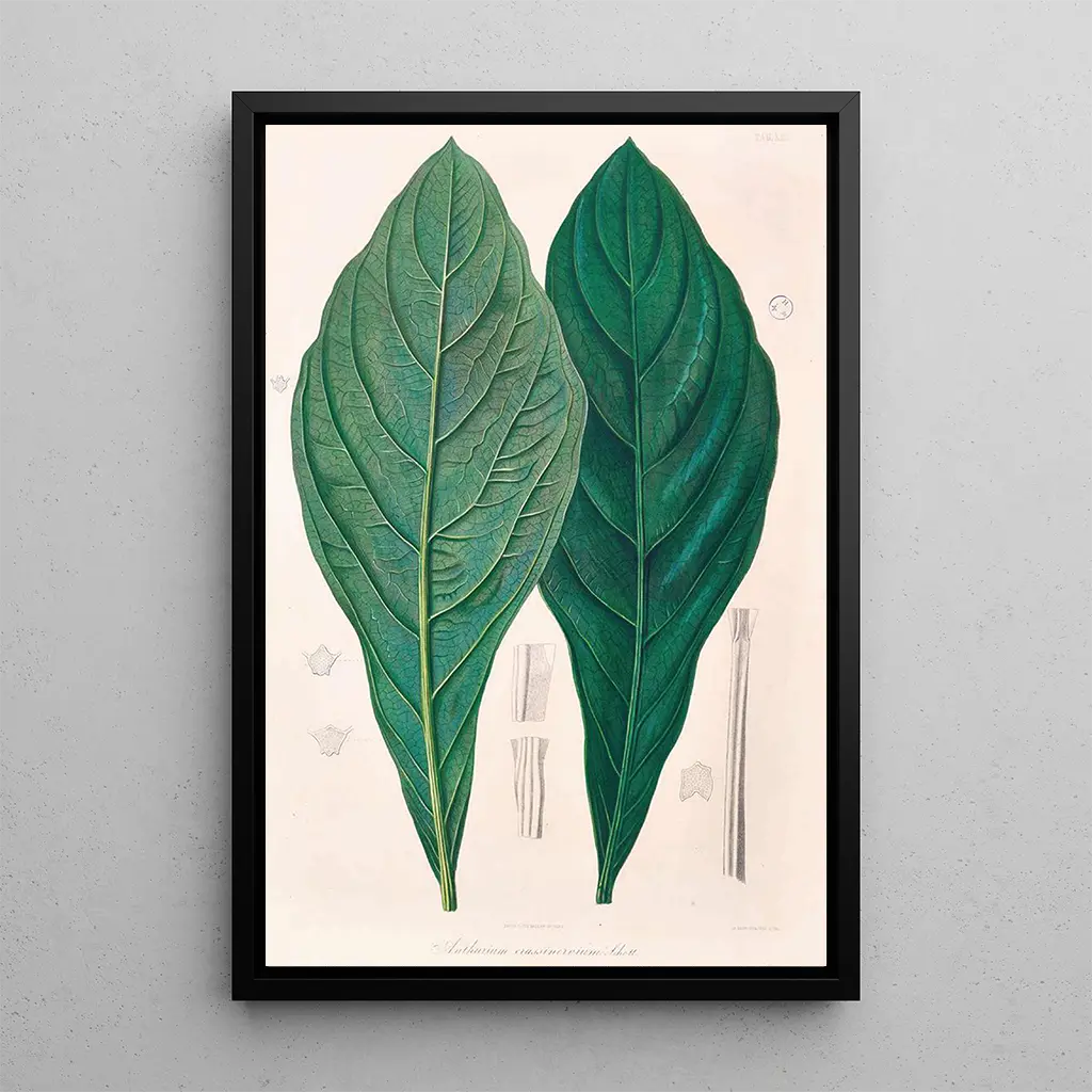 Icones Aroidearum Pl12 : een viering van de botanische diversiteit L'œuvre "Icones Aroidearum Pl12" de Heinrich Wilhelm Schott est un véritable hommage à la richesse en diversité des planten aroides. À travers des détails minutieux et des couleurs vibrantes, Schott parvient à capturer l'essence de ces espèces fascinantes. Les nuances de vert, de jaune et de violet se mêlent harmonieusement, créant une atmosphère à la fois vivante et apaisante. Chaque feuille et chaque fleur sont représentées avec une précision remarquable, invitant le spectateur à une contemplation attentive des merveilles de la nature. Deze kunstdruk is meer dan een eenvoudige botanische illustratie; ze roept een weelderige wereld op waarin elke plant een verhaal vertelt. Heinrich Wilhelm Schott : un pionnier de la botanique illustrée Heinrich Wilhelm Schott, botanist en illustrator uit de 19e eeuw, wordt erkend voor zijn belangrijke bijdragen aan de classificatie van planten. Geboren in 1794, wijdde hij zijn leven aan de studie van de aroides, een groep planten die vaak over het hoofd wordt gezien maar uitzonderlijk mooi is. Schott reisde de wereld rond, geïnspireerd door exotische landschappen en culturen die hij ontmoette. Zijn werk "Icones Aroidearum" is een onmiskenbare referentie in de botaniek, getuigend van zijn expertise en passie. In een tijd waarin wetenschap en kunst elkaar kruisten, wist Schott wetenschappelijke precisie te combineren met esthetiek, en liet hij een blijvende erfenis achter in de botanische illustratie. Een decoratieve aanwinst met vele voordelen De kunstdruk "Icones Aroidearum Pl12" is een decoratief stuk dat elke ruimte kan verrijken, of het nu een woonkamer, kantoor of slaapkamer is. De afdrukkwaliteit garandeert een goede weergave van de kleuren en details van het originele werk, waardoor een vleugje natuur in uw interieur wordt gebracht. Met zijn esthetische aantrekkingskracht wordt dit schilderij een boeiend middelpunt dat de interesse en nieuwsgierigheid van bezoekers wekt. Door voor dit doek te kiezen, kiest u voor een decoratie die cultuur, wetenschap en schoonheid combineert, terwijl u de pracht van de plantwereld viert.