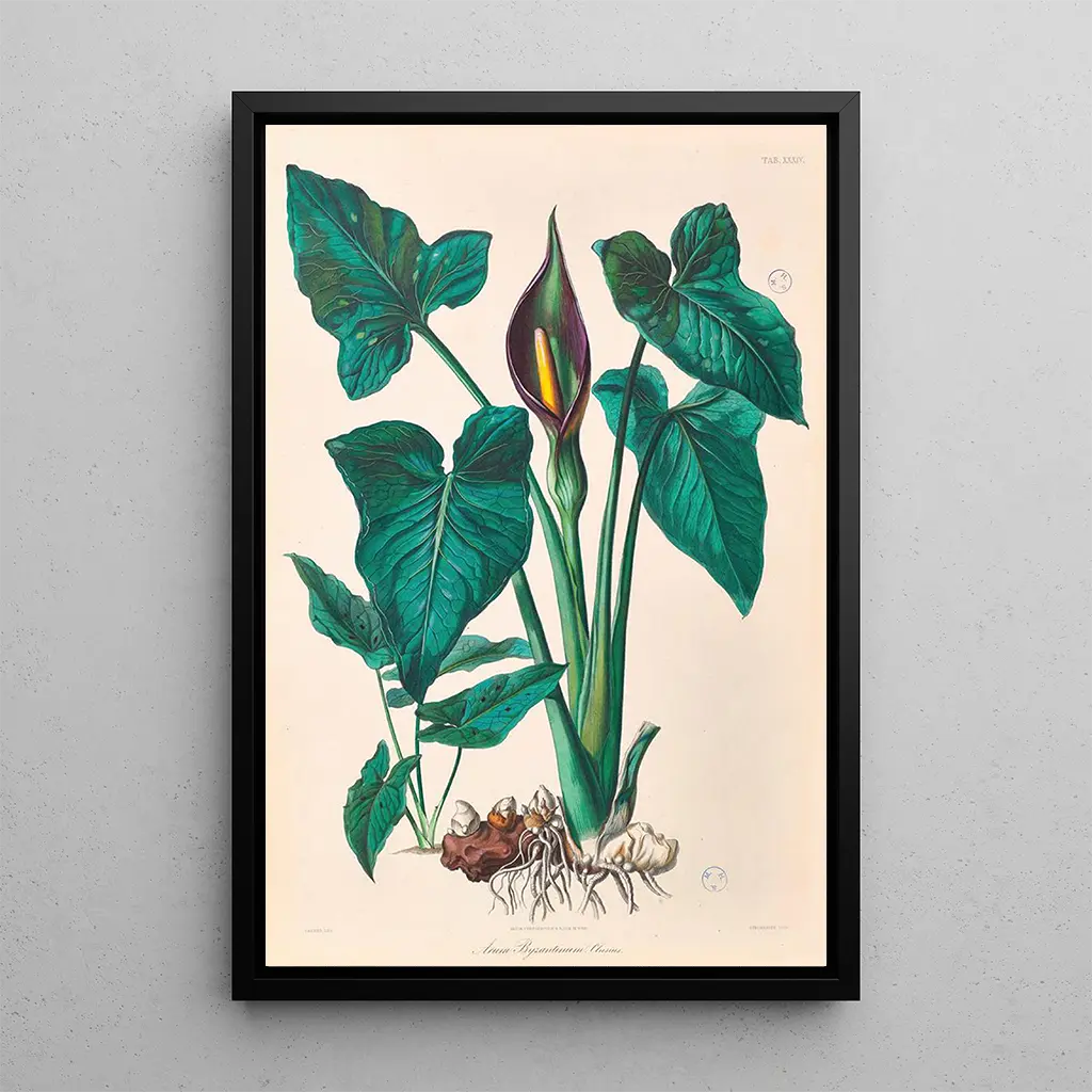 Icones Aroidearum Pl34 : een verkenning van botanische wonderen De kunstdruk van Icones Aroidearum Pl34 brengt ons naar het hart van een weelderige tuin, waar elke plant een verhaal vertelt. Dit werk onderscheidt zich door het gedurfde gebruik van kleuren, met levendige tinten groen en aardse nuances, die een opvallend contrast creëren. De graveertechniek maakt het mogelijk om de delicate texturen van de bladeren en bloemen weer te geven, wat een meeslepende visuele ervaring biedt. Bij het bekijken van dit doek voelt men de verwondering over de diversiteit aan vormen en kleuren die de natuur ons biedt, en wordt uitgenodigd tot reflectie over onze band met de plantwereld. Heinrich Wilhelm Schott : een kunstenaar in dienst van de wetenschap Heinrich Wilhelm Schott, botanist en illustrator, heeft de 19e eeuw gemarkeerd door zijn bijdragen aan de artistieke botanica. Zijn werk past in een tijdperk waarin de verkenning van exotische planten in volle gang was, en hij wist wetenschappelijke nauwkeurigheid te combineren met artistieke gevoeligheid. Schott wijdde zijn leven aan de studie van de aroiden, een fascinerende groep planten, en zijn illustraties, zoals die van Icones Aroidearum Pl34, zijn uitgegroeid tot referenties in het veld. Zijn nalatenschap blijft bestaan, omdat hij de essentie van deze soorten wist vast te leggen en ze toegankelijk maakte voor een breed publiek, wat bijdraagt aan het bewustzijn van biodiversiteit. Een decoratieve aanwinst met vele voordelen Het kiezen van de kunstdruk van Icones Aroidearum Pl34 betekent kiezen voor een werk dat je leefruimte verrijkt. Of het nu in een woonkamer, kantoor of slaapkamer is, dit doek past bij elke stijl van inrichting en brengt een vleugje frisheid en elegantie. De afdrukkwaliteit garandeert een opmerkelijke fideliteit aan de details en kleuren van het originele werk, en verzekert een duurzame esthetische aantrekkingskracht. Door deze kunstdruk in je interieur te integreren, creëer je een inspirerende en rustgevende sfeer, terwijl je de schoonheid van de natuur viert.