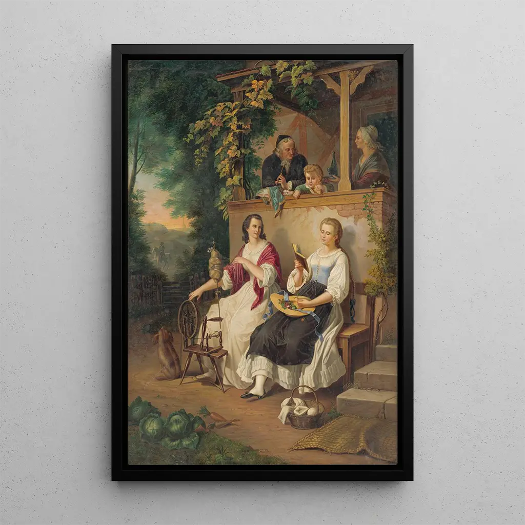 Peter Michal Bohúň, geboren in 1822, is een Slowaakse kunstdruk kunstenaar die erkend wordt om zijn rol in de Slowaakse nationale beweging van de 19e eeuw. Geïnspireerd door het romantisme, zette hij zich in om de cultuur en tradities van Slowakije te vertegenwoordigen via zijn kunst. Bohúň haalde vaak inspiratie uit het dagelijks leven, op zoek naar het vastleggen van typische scènes uit de Slowaakse samenleving van zijn tijd. Zijn werk, hoewel minder bekend internationaal, is van groot belang voor het behoud van de Slowaakse culturele identiteit. "Idylle familiale" illustreert perfect deze wens om het gezinsleven en de traditionele waarden te vieren.