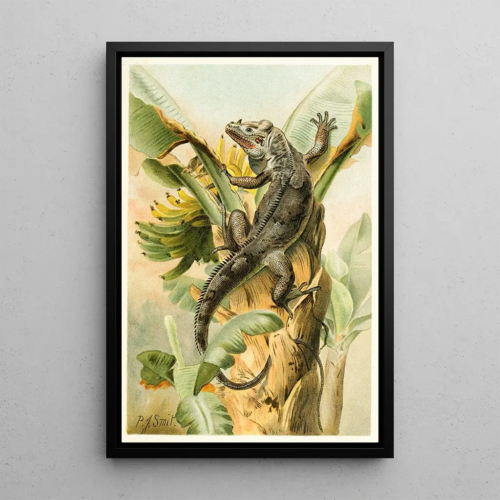 Dans cette kunstdruk de l'œuvre "L'Iguane noir", Pierre Jacques Smit capture l'essence même de cet animal majestueux. La toile se distingue par ses couleurs vibrantes, oscillant entre des nuances de vert profond et des touches de noir éclatant, qui évoquent la richesse de la biodiversité. La technique de Smit, mêlant réalisme et une subtile impression de mouvement, donne vie à l'iguane, le rendant presque palpable. L'atmosphère qui se dégage de cette œuvre invite à la contemplation, à l'émerveillement face à la beauté brute de la nature.