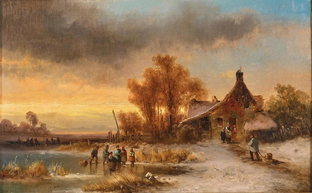 Anton Doll, een Duitse schilder uit de 19e eeuw, staat bekend om zijn landschappen vol romantiek. Geïnspireerd door de grote meesters van het landschapsschilderen, ontwikkelde hij een persoonlijke stijl die de schoonheid van de natuur benadrukt. Zijn werken, vaak geïnspireerd door scènes uit het Duitse platteland, getuigen van een bijzondere gevoeligheid voor licht en kleur. Doll wist de essentie van de seizoenen vast te leggen, en zijn werk had een grote invloed op de ontwikkeling van het landschapschilderen in zijn tijd, waardoor hij een onmisbare figuur werd binnen de romantische beweging.