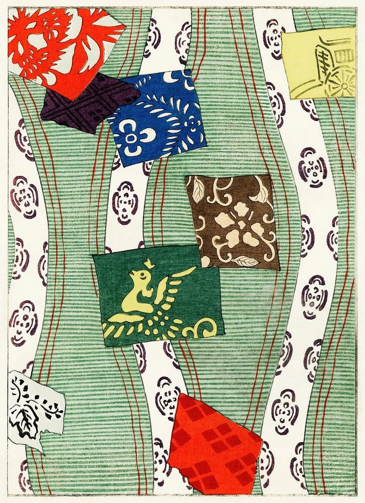 Kunstdruk | Illustratie van Japanse motiefpatronen - Watanabe Seitei