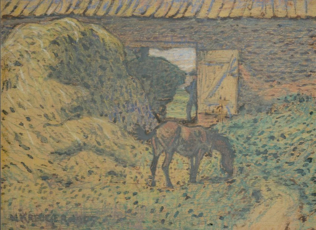 In de hooischuur: een landelijke scène doordrenkt met nostalgie De kunstdruk In de hooischuur brengt ons naar een landelijk landschap, waar het gouden licht van de zon door de houten balken filtert. Dit doek roept de eenvoud van het leven op het platteland op, met personages die betrokken zijn bij dagelijkse activiteiten. De warme, aardse kleuren, gecombineerd met groene accenten, creëren een rustgevende en troostende sfeer. De kunstenaar slaagt erin de essentie vast te leggen van een moment dat in de tijd lijkt stil te staan, en nodigt de kijker uit zich onder te dompelen in deze serene scène. Nils Kreuger: de uitdrukking van het noordse landschap Nils Kreuger, Zweedse schilder uit het begin van de 20e eeuw, is beroemd om zijn weergaven van landschappen en scènes uit het dagelijks leven. Geïnspireerd door de impressionistische beweging, wist hij elementen van licht en kleur te integreren die zijn unieke stijl kenmerken. Kreuger heeft vaak de schoonheid van noordse landschappen verkend, met als doel de emotie en sfeer van zijn onderwerpen over te brengen. Zijn kunstdruk In de hooischuur is emblematisch voor zijn aanpak, die realisme en poëzie combineert, en getuigt van zijn verbondenheid met de natuur en het landelijke leven. Een decoratief stuk met vele voordelen De kunstdruk In de hooischuur is een charmante toevoeging aan elk interieur, of het nu een woonkamer, eetkamer of kantoor betreft. Zijn harmonieuze compositie en zachte kleuren brengen warmte en gezelligheid in uw ruimte. De kwaliteit van de afdruk garandeert een trouwheid aan het originele werk, waardoor elk detail van deze landelijke scène kan worden gewaardeerd. Door voor dit schilderij te kiezen, creëert u een gastvrije en inspirerende omgeving, en eert u tegelijkertijd de kunst van Nils Kreuger.