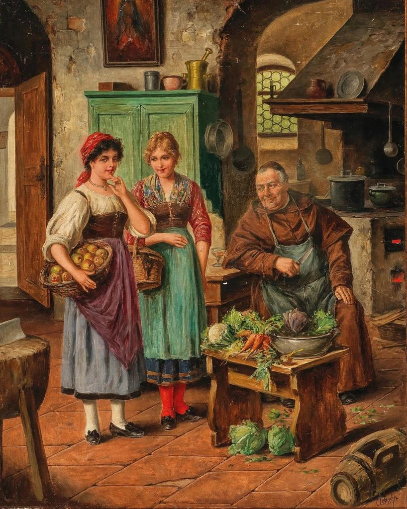 Kunstdruk In de keuken van het klooster - Carl Ostersetzer – Boeiende introductie
