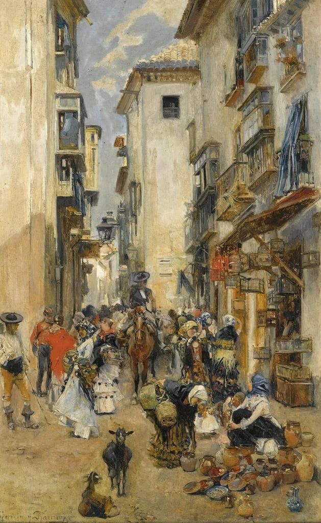 In de straat: een levendige scène van het stadsleven In de kunstdruk "In de straat" vangt José García Ramos de essentie van het stadsleven met een heldere kleurenpalet en een dynamische compositie. De personages, levendig en expressief, bewegen zich in een omgeving vol details, waarin elk element een verhaal vertelt. De techniek van de kunstenaar, die impressionisme en realisme combineert, creëert een levendige en meeslepende sfeer die de kijker uitnodigt om zich onder te dompelen in deze dagelijkse scène. Het spel van licht en schaduw voegt een verbluffende diepte toe, waardoor dit doek boeiend en vol leven wordt. José García Ramos: een meester van het Spaanse realisme José García Ramos, geboren in 1852 in Sevilla, is een iconisch kunstenaar van de Spaanse realistische beweging. Geïnspireerd door de grote meesters van zijn tijd, ontwikkelde hij een unieke stijl die precisie en expressiviteit combineert. Actief aan het einde van de 19e eeuw en het begin van de 20e eeuw, nam hij deel aan talrijke tentoonstellingen en droeg hij bij aan de erkenning van de Spaanse kunst op het internationale toneel. Zijn werken, vaak gericht op het dagelijks leven en volks scènes, getuigen van een diep begrip van de mens en een toewijding aan een getrouwe weergave van de realiteit. Een decoratief kunstdruk met vele voordelen De kunstdruk "In de straat" is een decoratief stuk dat perfect past in diverse ruimtes zoals de woonkamer, kantoor of zelfs een slaapkamer. De kwaliteit van de afdruk en de trouw aan het originele werk garanderen een onmiskenbare esthetische aantrekkingskracht. Door voor dit schilderij te kiezen, brengt u een vleugje elegantie en dynamiek in uw interieur, terwijl u gesprekken over kunst en cultuur stimuleert. De levendige en kleurrijke sfeer maakt van dit doek een centraal element in uw decoratie, dat de aandacht van al uw gasten zal trekken.