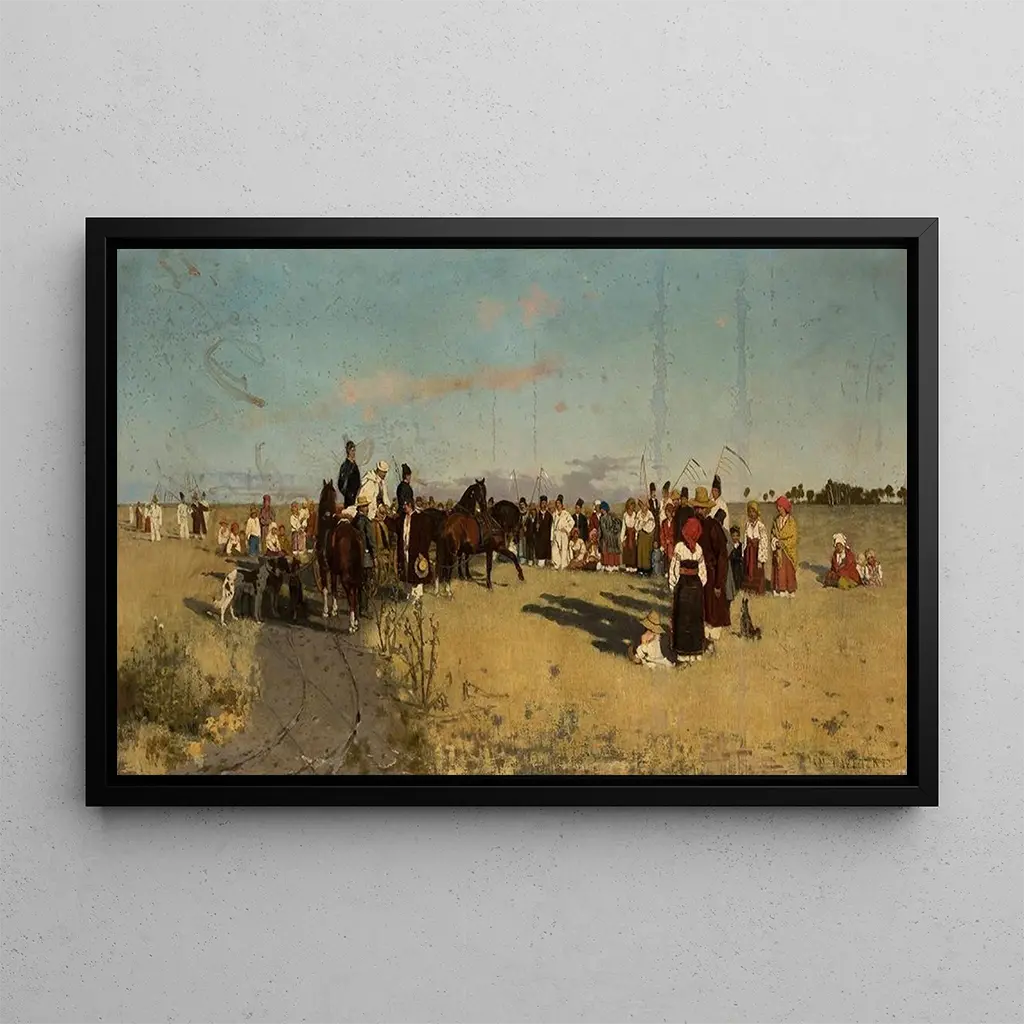 In het veld: een idyllisch landschap vol sereniteit De kunstdruk van In het veld, een werk van Jan Owidzki, brengt ons naar een landelijk landschap waar de natuur bloeit. Dit doek beeldt een rustige scène uit, waarin zachte kleuren en delicate lichtinvallen de rust van een zonnige dag oproepen. De minutieuze details van de bloemen en het gras, gecombineerd met een blauwe hemel bezaaid met wolken, creëren een dromerige en contemplatieve sfeer. Owidzki slaagt erin de vergankelijke schoonheid van de natuur vast te leggen, en nodigt de kijker uit om te ontsnappen in dit betoverende schilderij. Jan Owidzki: een meester van het landschap uit de 18e eeuw Jan Owidzki, een Poolse schilder uit de 18e eeuw, wordt erkend om zijn evocatieve landschappen en zijn vermogen om de harmonie van de natuur op doek vast te leggen. Geïnspireerd door de romantische beweging, wist hij elementen van het landelijke leven te integreren in zijn werken, wat een tijdperk weerspiegelt waarin de natuur werd gevierd. Zijn schilderijen, vaak doordrenkt met melancholie en sereniteit, getuigen van zijn liefde voor de buitenlucht en zijn wens om vluchtige momenten te vangen. Owidzki heeft een artistieke erfenis achtergelaten die nog steeds kunstenaars en natuurliefhebbers inspireert. Een decoratief stuk met vele voordelen Kiezen voor de kunstdruk van In het veld betekent je leefruimte verrijken met een werk dat rust en natuurlijke schoonheid uitstraalt. Of het nu in een woonkamer, eetkamer of kantoor is, dit schilderij brengt een vleugje frisheid en sereniteit. De kwaliteit van de afdruk garandeert een opmerkelijke trouw aan de nuances en details van het originele werk, terwijl het een onmiskenbare esthetische aantrekkingskracht biedt. Door deze doek in je inrichting te integreren, creëer je een gastvrije en inspirerende omgeving, ideaal voor ontspanning en contemplatie.