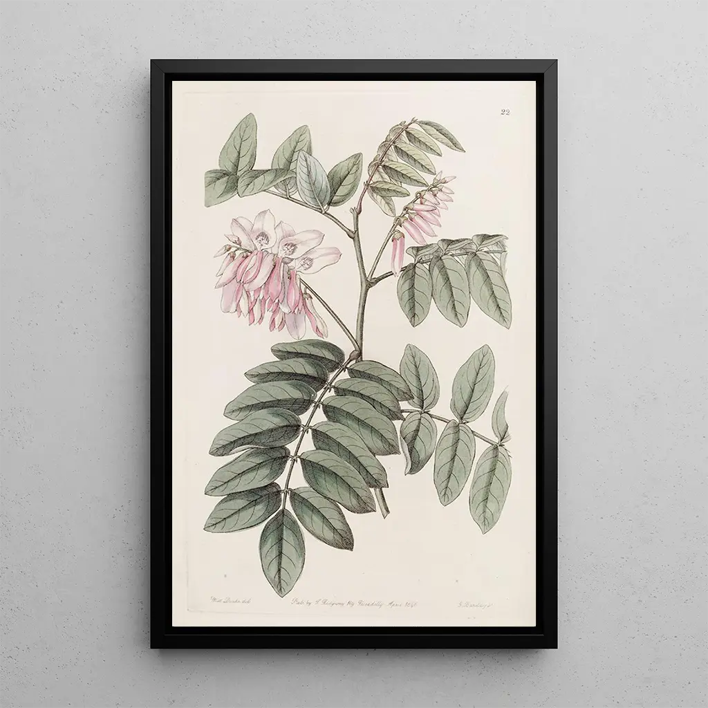 Dans cette kunstdruk de L'indigo gracieux, Sydenham Edwards nous offre une vision captivante d'une plante aux teintes vibrantes. Les nuances d'indigo se mêlent harmonieusement, créant un effet visuel qui évoque la légèreté et la fluidité. La composition, soigneusement équilibrée, met en avant les formes délicates des feuilles et des fleurs, tout en laissant transparaître une atmosphère de sérénité. Chaque détail est rendu avec une précision qui témoigne du talent d'Edwards, invitant le spectateur à s'émerveiller devant la beauté de la nature.