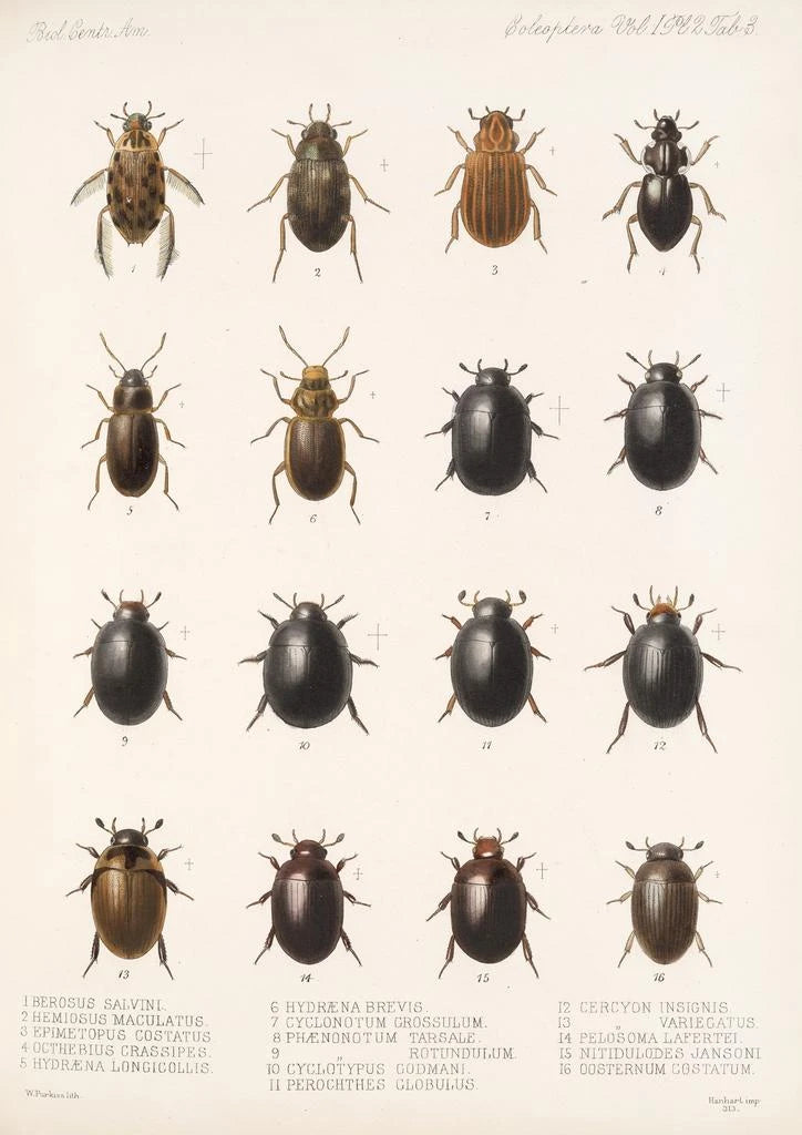 L'œuvre "Insecta Coleoptera Pl 040" de Frederick DuCane Godman est une véritable ode à la diversité des coléoptères. Avec une palette de couleurs vibrantes allant des verts éclatants aux bruns terreux, cette kunstdruk attire l'œil et invite à l'exploration. La précision des détails, réalisée à l'aide de techniques de gravure minutieuses, permet de découvrir la beauté et la complexité de ces insectes. L'atmosphère qui se dégage de cette œuvre est à la fois scientifique et poétique, évoquant un monde naturel riche et fascinant, où chaque espèce a son propre rôle à jouer.