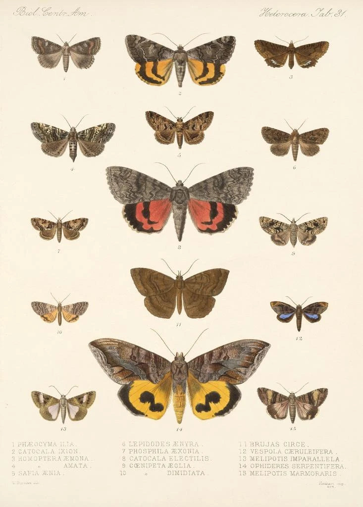 Schilderij Insecta Lepidoptera Heterocera Pl 031 - Frederick DuCane Godman | Kunstdruk