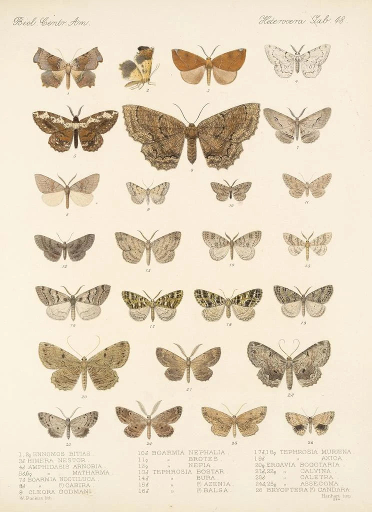 Frederick DuCane Godman, Britse naturalist en illustrator uit de 19e eeuw, wist wetenschap en kunst te combineren in zijn werken. Geïnspireerd door de wetenschappelijke ontdekkingen van zijn tijd, wijdde hij een groot deel van zijn leven aan de studie van insecten, vooral vlinders. Zijn illustraties, zoals die van Insecta Lepidoptera Heterocera Pl 048, zijn het resultaat van een rigoureus en gepassioneerd werk, dat het belang van de classificatie en documentatie van soorten benadrukt. Godman werkte samen met andere wetenschappers, waardoor hij bijdroeg aan een beter begrip van biodiversiteit en het bewustzijn van de schoonheid van de natuur.