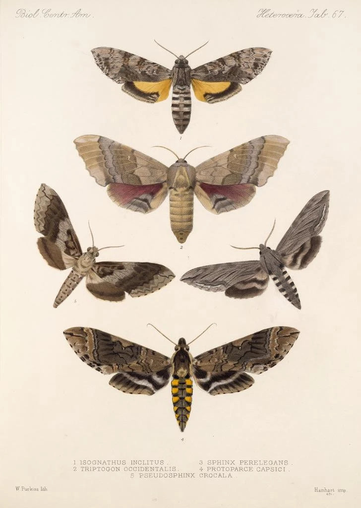 Schilderij Insecta Lepidoptera Heterocera Pl 067 - Frederick DuCane Godman | Kunstdruk