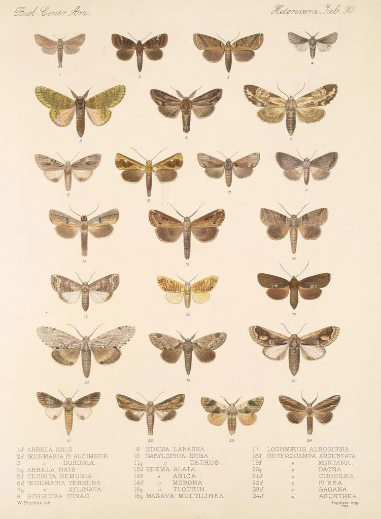 Frederick DuCane Godman, naturalist en illustrator uit de 19e eeuw, heeft de geschiedenis van de entomologie beïnvloed door zijn artistieke en wetenschappelijke bijdragen. Gepassioneerd door biodiversiteit, reisde hij de wereld rond om insecten te bestuderen en te illustreren, vooral vlinders. Zijn kunstwerk "Insecta Lepidoptera Heterocera Pl 090" maakt deel uit van een ambitieus project dat erop gericht is om de soorten vlinders te catalogiseren, waarbij wetenschappelijke nauwkeurigheid en artistieke gevoeligheid worden gecombineerd. Godman heeft zo een blijvende erfenis achtergelaten, die toekomstige generaties inspireert om de rijkdom van de fauna te verkennen en te waarderen.