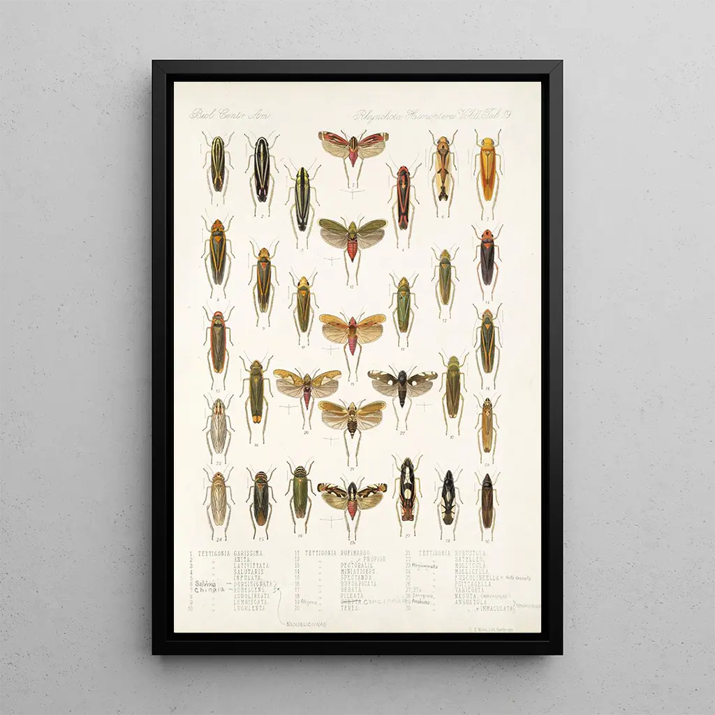 De kunstdruk Insecta Rhynchota Hemiptera Homoptera Pl 33 toont een fascinerende verscheidenheid aan insecten, die de rijkdom van de biodiversiteit onthult. De precieze details en de levendige kleuren van dit werk vangen de essentie van deze wezens. Elk insect wordt met uiterste aandacht weergegeven, waarbij hun unieke vormen en delicate patronen worden benadrukt. De sfeer van het doek is zowel levendig als rustgevend, en nodigt de kijker uit om onder te dompelen in een vaak onbekende wereld. Dit werk is een ware eerbetoon aan de schoonheid van de natuur, en zet aan tot nadenken over onze omgeving.