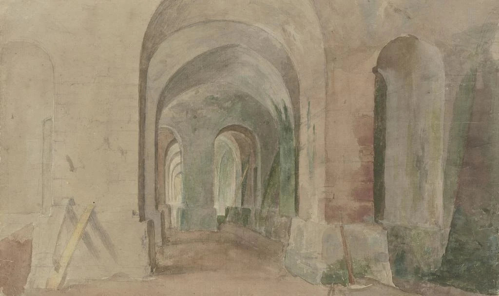Binnenkant van een gewelfde zaal met zuilen: een duik in de historische architectuur