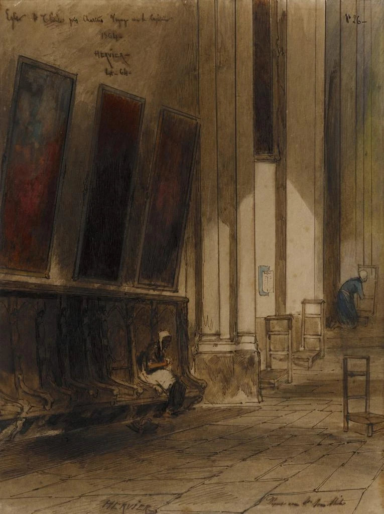 Interieur van een kathedraal - Louis-Adolphe Hervier