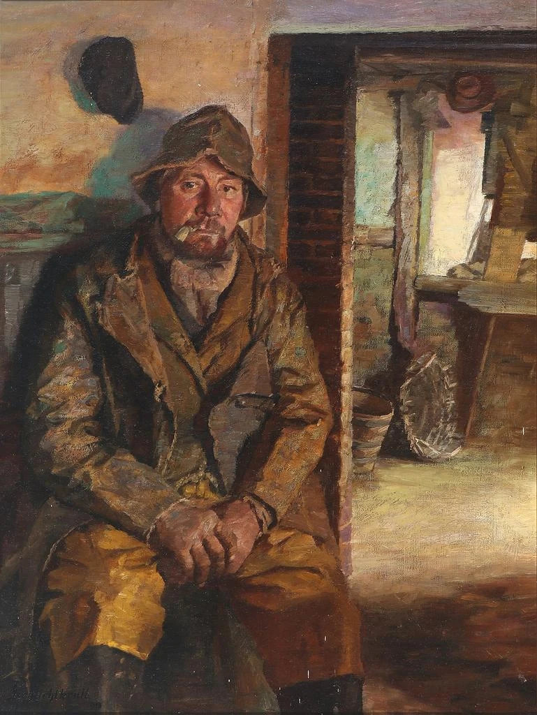 Interieur met een visser - Johan Christopher Schlichtkrull