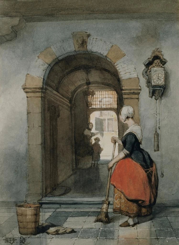Binnen met dienares: een delicate scène uit het leven