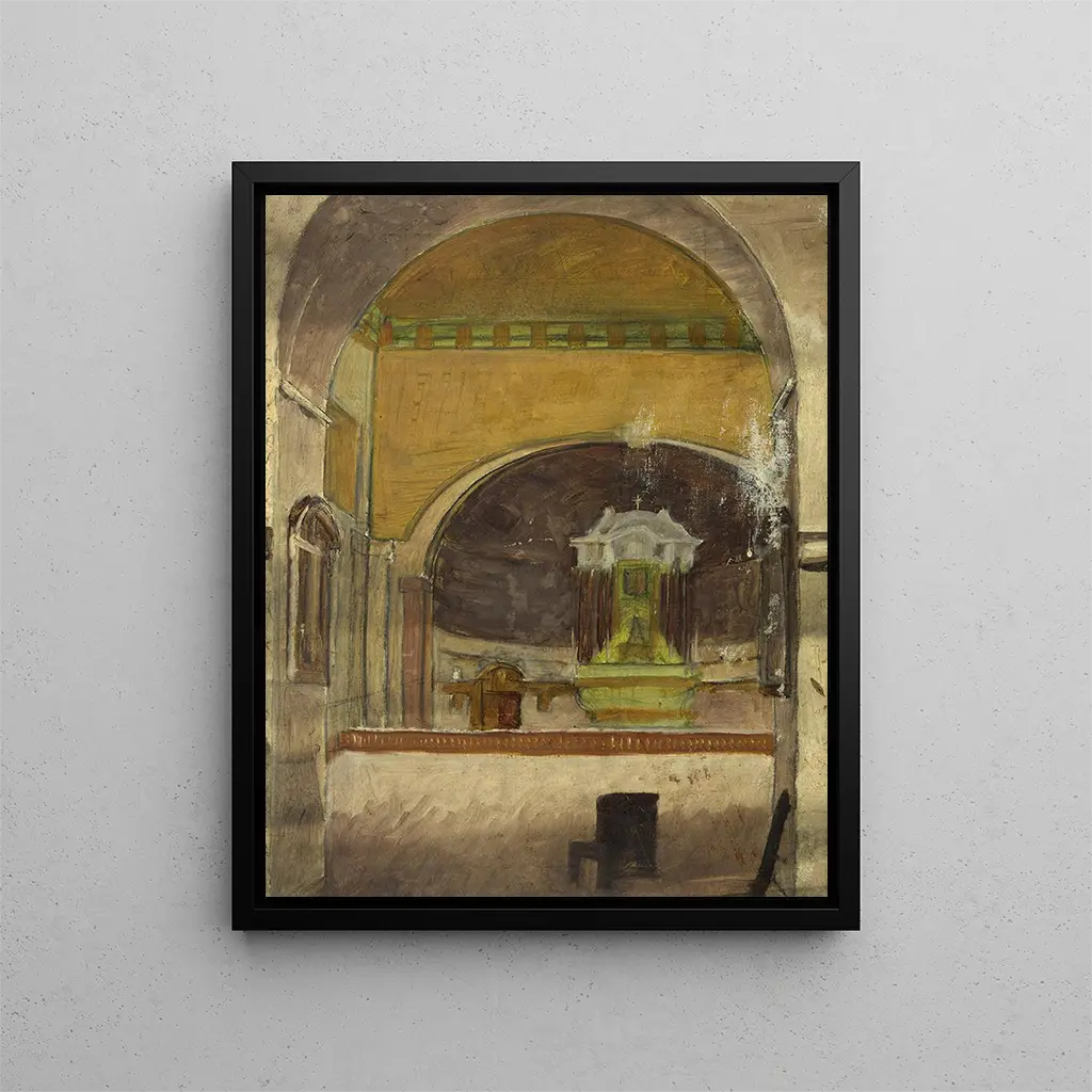 Reproductie Interieur van de kerk van Assisi - Arthur Joseph Gueniot – Boeiende introductie In het uitgestrekte panorama van de kunstgeschiedenis springen bepaalde werken eruit door hun vermogen om de essentie van een plaats, een sfeer, een emotie vast te leggen. "Interieur van de kerk van Assisi - Arthur Joseph Gueniot" is een van die stukken die de toeschouwer meeneemt naar het hart van een heiligdom dat doordrenkt is van sereniteit en spiritualiteit. Het zachte licht dat door de glas-in-loodramen filtert, de delicate lijnen van de gewelven, en de harmonieuze indeling van de architecturale elementen nodigen uit tot introspectieve contemplatie. Dit schilderij, een ware ode aan de schoonheid van heilige ruimtes, roept een zoektocht naar innerlijke vrede op, en eert de majesteit van middeleeuwse kerken terwijl het zich onderscheidt door een eigen stijl. Stijl en uniekheid van het werk Het werk van Arthur Joseph Gueniot onderscheidt zich door een realistische benadering en een minutieuze aandacht voor details. Elke penseelstreek lijkt geladen met een intentie, een verlangen om niet alleen de uitstraling van de kerk vast te leggen, maar ook haar ziel. De kleurnuances die de kunstenaar kiest, van warme tinten tot diepere schaduwen, creëren een sfeer die zowel rustgevend als mysterieus is. De compositie is zorgvuldig georkestreerd, elk element heeft zijn plaats, wat bijdraagt aan de algehele balans van de scène. Gueniot slaagt erin een dialoog tot stand te brengen tussen architectuur en licht, waardoor de ruimte wordt omgevormd tot een visuele, meeslepende ervaring. Deze capaciteit om het heilige en het alledaagse te combineren in een visuele harmonie maakt dat dit werk zo uniek en tijdloos is. De kunstenaar en zijn invloed Arthur Joseph Gueniot, hoewel minder bekend dan sommige van zijn tijdgenoten, heeft een onuitwisbare stempel gedrukt op de wereld van de kunst. Zijn artistieke parcours wordt gekenmerkt door een passie voor landschappen en historische architectuur, beïnvloed door grote meesters uit het verleden. Gueniot, met zijn unieke stijl, heeft de traditionele technieken eigen gemaakt en er zijn eigen visie aan toegevoegd. Zijn werk getuigt van een diep respect voor artistiek erfgoed, terwijl hij tracht de blik op deze met geschiedenis geladen plaatsen te vernieuwen. Zijn invloed is voelbaar bij vele hedendaagse kunstenaars die streven naar…