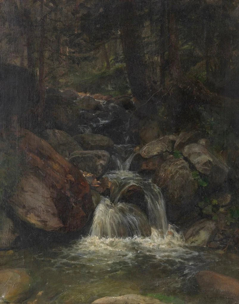 Binnenkant van het bos met waterval - Gustav Friedrich Papperitz