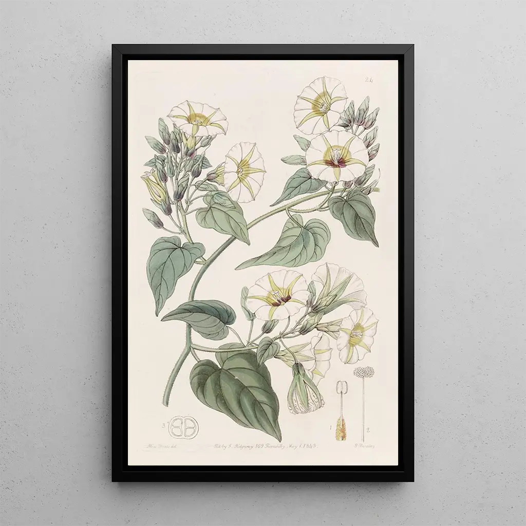 La kunstdruk de L'ipomée à grappes blanches nous transporte au cœur d’un jardin luxuriant, où la délicatesse des fleurs s’épanouit dans toute sa splendeur. Ce tableau, réalisé par Sydenham Edwards, met en avant les nuances subtiles de blanc et de vert, créant une atmosphère fraîche et vivifiante. La composition est soigneusement orchestrée, chaque pétale et chaque feuille étant représentés avec une précision remarquable. La lumière joue un rôle essentiel, illuminant les fleurs et accentuant leur beauté naturelle, invitant ainsi le spectateur à apprécier la magnificence de la flore.