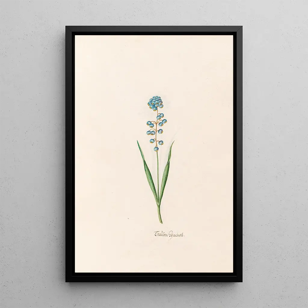 De kunstdruk van het werk "Jacinthe gekozen" van Magdalena Rosina Funck dompelt ons onder in een delicate bloemrijke wereld. De nuances van violet en blauw vermengen zich harmonieus, waardoor een rustgevende en dromerige sfeer ontstaat. De techniek van olieverf, met zijn vloeiende penseelstreken, brengt elke bloemblad tot leven, terwijl de subtiele achtergrond de majesteit van de jacinthe benadrukt. Het werk nodigt uit tot contemplatie, en roept de zachtheid van de lente en de vergankelijke schoonheid van de natuur op. Funck slaagt erin de essentie van de bloem vast te leggen, en transformeert een eenvoudig boeket in een levendige kunstwerk.