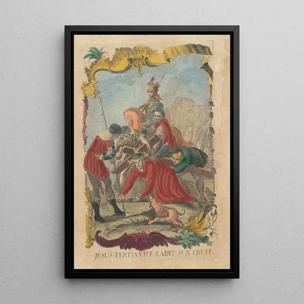 Schilderij Jezus valt voor de derde keer onder het kruis - Familie Remondini | Kunstdruk