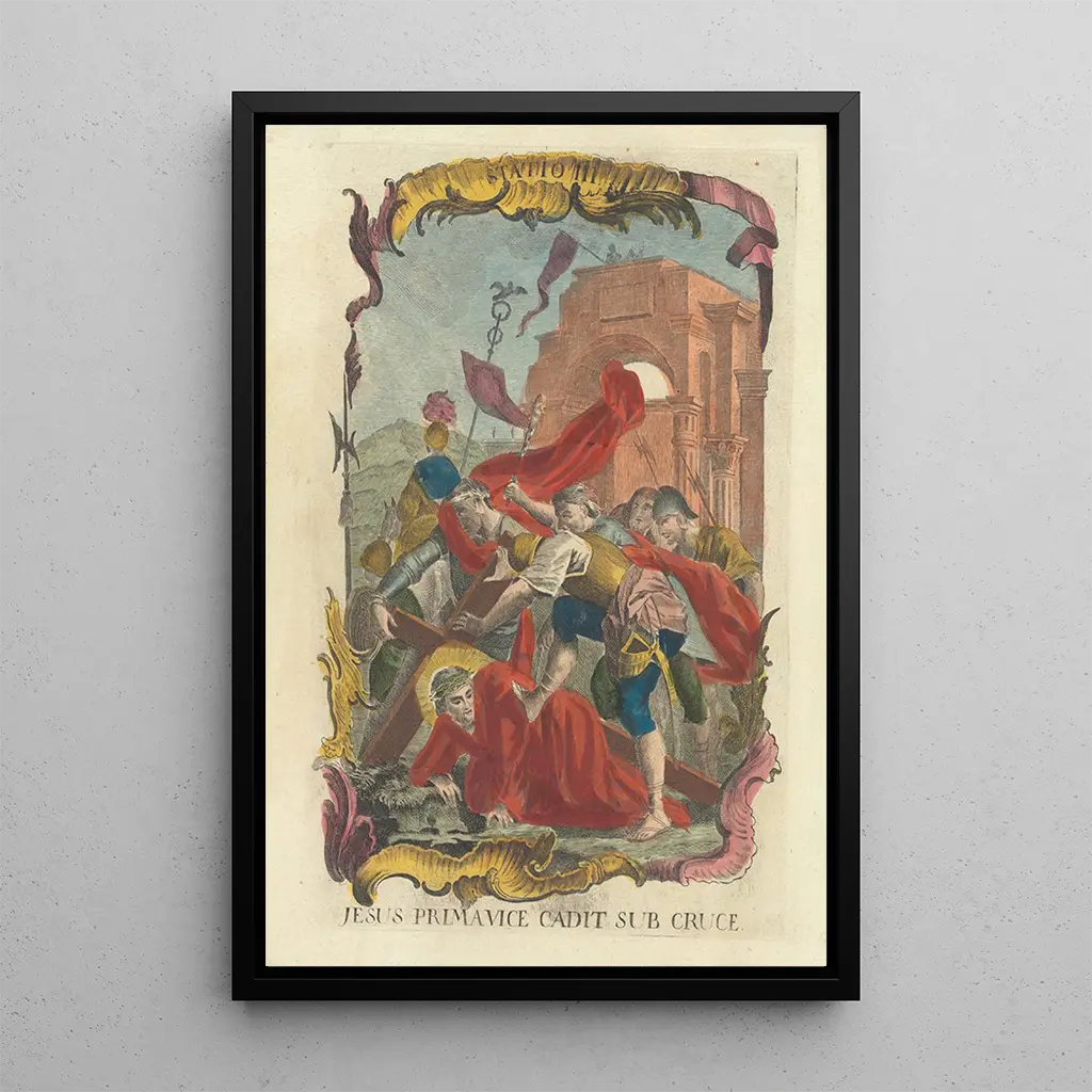 Schilderij Jezus valt voor de eerste keer onder het kruis - Familie Remondini | Kunstdruk