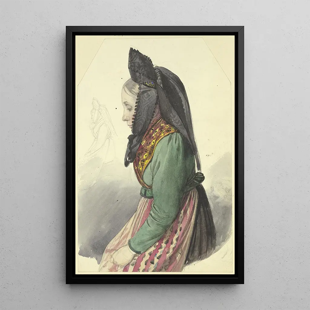 Jeune paysanne vers la gauche : un portrait empreint de simplicité et de grâce Dans "Jeune paysanne vers la gauche", Jakob Becker capture l'essence d'une vie rurale authentique. La composition met en avant une jeune femme, vêtue d'un costume traditionnel, qui se tourne légèrement vers la gauche, offrant un regard pensif. Les couleurs terreuses, dominées par des nuances de vert et de brun, évoquent la nature environnante et la simplicité de la vie paysanne. La technique de Becker, qui mêle réalisme et touches impressionnistes, crée une atmosphère chaleureuse et intime, invitant le spectateur à ressentir la sérénité de cette existence modeste. Jakob Becker : un témoin de la vie paysanne au XIXe siècle Jakob Becker, peintre allemand du XIXe siècle, est reconnu pour sa capacité à dépeindre la vie rurale avec une sensibilité unique. Influencé par le mouvement réaliste, il s'efforce de représenter la beauté des scènes quotidiennes, loin des idéaux romantiques de son époque. Becker a souvent exploré des thèmes liés à la nature et à la vie paysanne, témoignant d'une profonde admiration pour le monde rural. Son œuvre, bien que moins connue que celle de ses contemporains, joue un rôle essentiel dans la documentation de la vie des paysans allemands, offrant un aperçu précieux de cette période. Une acquisition décorative aux multiples atouts La kunstdruk de "Jeune paysanne vers la gauche" est une pièce décorative qui s'intègre harmonieusement dans divers espaces, que ce soit un salon, un bureau ou une chambre. Sa qualité d'impression fidèle et son attrait esthétique en font un choix idéal pour ceux qui recherchent à ajouter une touche d'authenticité à leur intérieur. Ce tableau, avec sa représentation touchante de la vie rurale, suscite des conversations et invite à la contemplation. En choisissant cette toile, vous optez pour une œuvre qui allie beauté et histoire, enrichissant ainsi votre décoration intérieure.