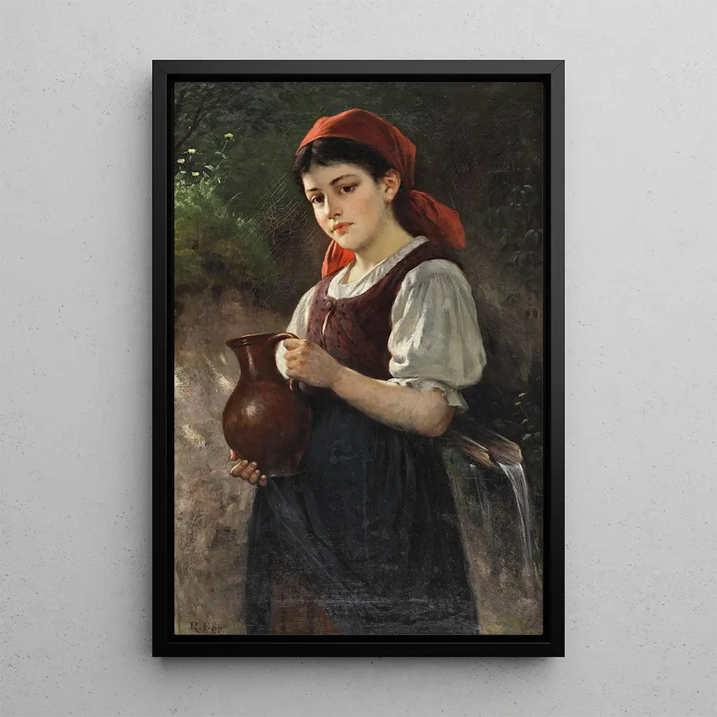 Schilderij Jonge vrouw met een kruik van aardewerk - Rudolf Epp | Kunstdruk