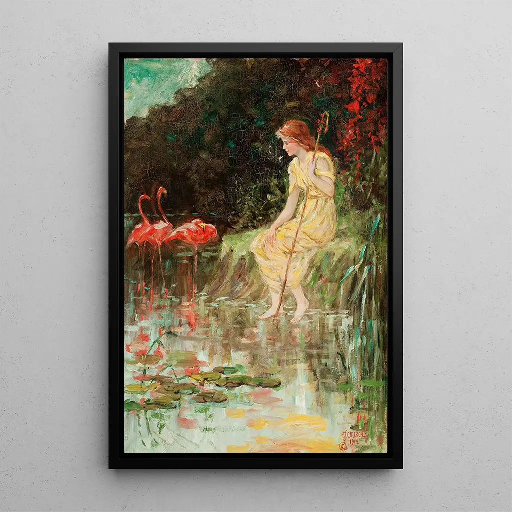 Schilderij Jonge Vrouw met Roze Flamingo's - Frederick Stuart Church | Kunstdruk