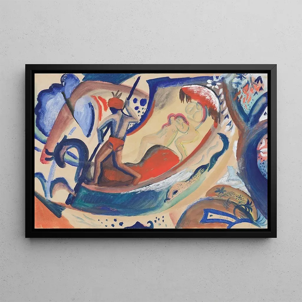 Jeunes filles nues dans la barque : une célébration de la jeunesse et de la liberté Cette kunstdruk d'August Macke, "Jeunes filles nues dans la barque", évoque une scène estivale empreinte de légèreté et de joie. Les figures féminines, délicatement représentées, flottent sur l'eau d'un lac paisible, entourées de couleurs vives et de formes organiques. Macke, avec sa palette audacieuse et ses coups de pinceau expressifs, capture l'insouciance de la jeunesse et la beauté de la nature. L'atmosphère de cette œuvre est à la fois rêveuse et vivante, invitant le spectateur à ressentir la fraîcheur de l'air et la douceur des rayons du soleil. August Macke : un pionnier du fauvisme et de l'expressionnisme August Macke, schilder uit Duitsland van het begin van de 20e eeuw, is een van de iconische figuren van de expressionistische beweging. Zijn stijl, gekenmerkt door heldere kleuren en gedurfde composities, weerspiegelt een zoektocht naar artistieke vrijheid en een gevoeligheid voor de schoonheid van de wereld. Macke werd beïnvloed door zijn reizen en ontmoetingen met andere kunstenaars, vooral die van de groep Blaue Reiter. Zijn carrière, hoewel tragisch onderbroken door de Eerste Wereldoorlog, heeft een blijvende erfenis achtergelaten in de kunstwereld, en markeert een periode van transformatie en experimentatie. Een decoratief kunstdruk met vele voordelen De kunstdruk van "Jeunes filles nues dans la barque" is een perfecte aanvulling voor elke interieurdecoratie. Of u nu een woonkamer wilt opvrolijken, een artistiek accent wilt toevoegen aan een kantoor of een rustige sfeer in een slaapkamer wilt creëren, dit doek zal zeker aanspreken. De afdrukkwaliteit garandeert een verbluffende fideliteit aan de levendige nuances van het originele werk, terwijl het een boeiende esthetiek biedt. Door te kiezen voor deze kunstdruk, brengt u de geest van vrijheid en levensvreugde van August Macke in uw ruimte, waardoor uw interieur wordt omgevormd tot een plek van inspiratie en schoonheid.