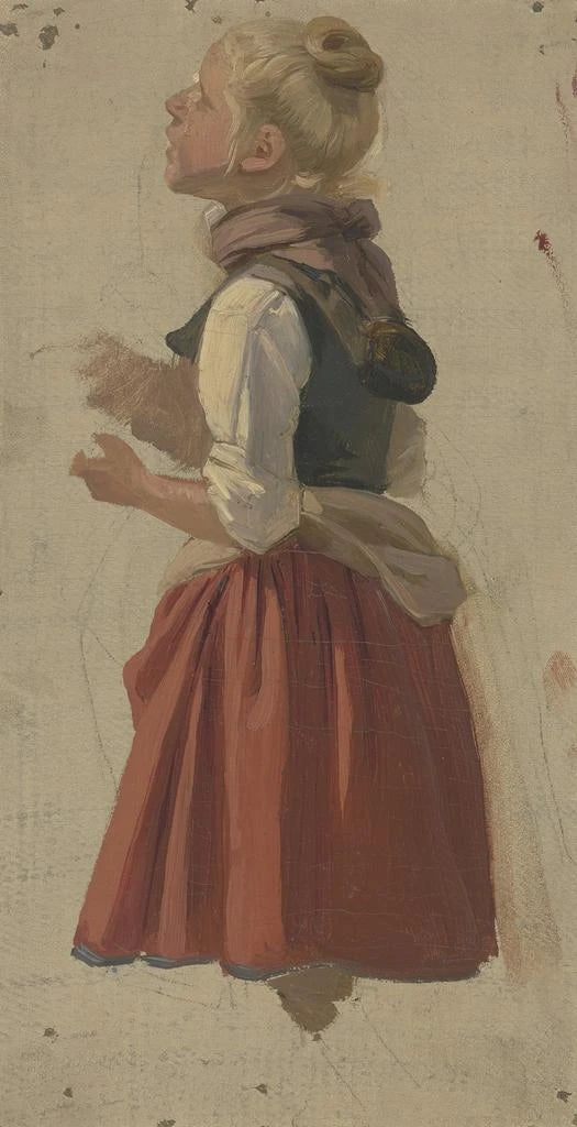 Schilderij jonge boerin - Jakob Becker | Kunstdruk