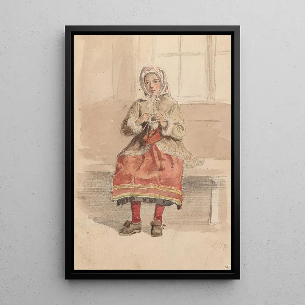 Kunstdruk | Jonge vrouw breiend - Adolph Tidemand