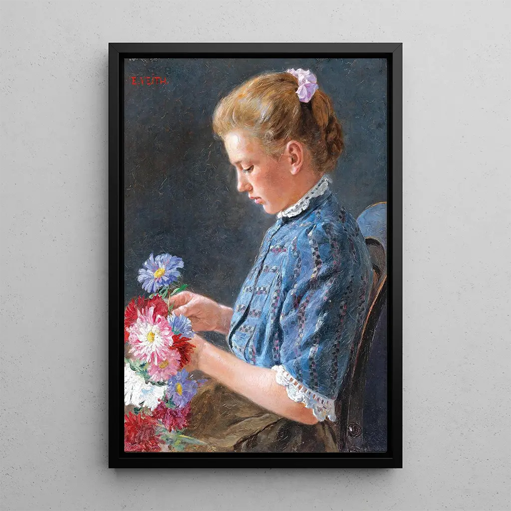 De kunstdruk van "Jeune fille viennoise du Naschmarkt" van Eduard Veith roept een levendige en charmante scène op. Dit schilderij beeldt een jonge vrouw uit, waarschijnlijk een handelaarster, af in het levendige kader van de Naschmarkt, de beroemde markt van Wenen. De felle kleuren en de minutieuze details van het doek vangen niet alleen de schoonheid van de hoofdpersoon, maar ook de bruisende sfeer van het stadsleven. Het licht speelt een essentiële rol, verlicht het gezicht van de jonge vrouw en creëert een warme en uitnodigende atmosfeer die de kijker uitnodigt om zich onder te dompelen in deze dagelijkse scène.