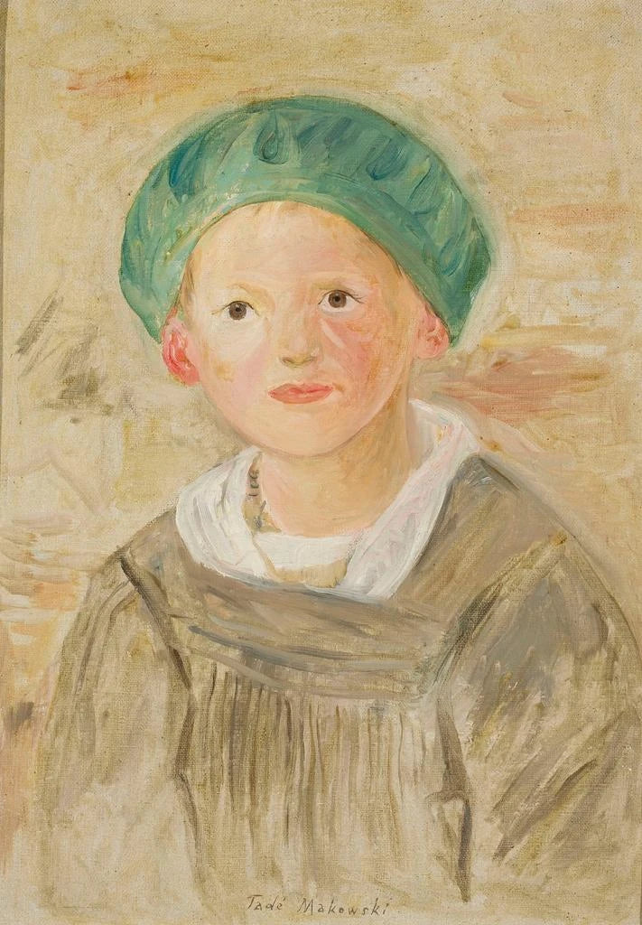 Kunstdruk | Jongen met groene pet - Tadeusz Makowski