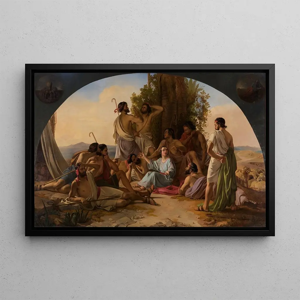 Josef vertelt zijn dromen: een duik in de verbeelding In "Josef vertelt zijn dromen" brengt Carl Wurzinger ons naar een dromerige wereld waar realiteit en verbeelding samenvloeien. De compositie van dit kunstwerk is rijk aan details, elk element lijkt een verhaal te vertellen. De pastelkleuren, zacht en rustgevend, creëren een sfeer van droom en sereniteit. Wurzingers techniek, die finesse in de lijnen combineert met de glans van de tinten, nodigt de kijker uit om te ontsnappen en de kronkels van zijn eigen onderbewustzijn te verkennen. Dit schilderij, een ware ode aan creativiteit, zet ons aan tot nadenken over onze eigen dromen en aspiraties. Carl Wurzinger: een kunstenaar in het hart van de romantische beweging Carl Wurzinger, schilder uit de 19e eeuw, wordt vaak geassocieerd met de romantische beweging, die de uitdrukking van emoties en de schoonheid van de natuur waardeert. Geboren in Oostenrijk, was hij beïnvloed door de Alpenlandschappen en de folkloristische verhalen uit zijn regio. Wurzinger wist de essentie van zijn tijd vast te leggen, door realisme en het fantastische te combineren in zijn werken. Zijn unieke stijl, gekenmerkt door poëtische scènes, heeft zijn tijd gekenmerkt en blijft vele hedendaagse kunstenaars inspireren. Door zijn werk opnieuw te ontdekken, begrijpen we het belang van verbeelding in de kunst en haar rol in de zoektocht naar betekenis. Een decoratief stuk met vele voordelen De kunstdruk van "Josef vertelt zijn dromen" is een ideale keuze om je interieur te verfraaien, of het nu in een woonkamer, kantoor of slaapkamer is. De afdrukkwaliteit garandeert een opmerkelijke fideliteit aan de details en kleuren van het originele werk, zodat je ten volle kunt genieten van de esthetische aantrekkingskracht. Dit schilderij brengt een vleugje poëzie en sereniteit in je decoratie, terwijl het ook tot nadenken stemt over de wereld van dromen. Door deze doek in je ruimte te integreren, creëer je een inspirerende en rustgevende omgeving, bevorderlijk voor creativiteit en contemplatie.