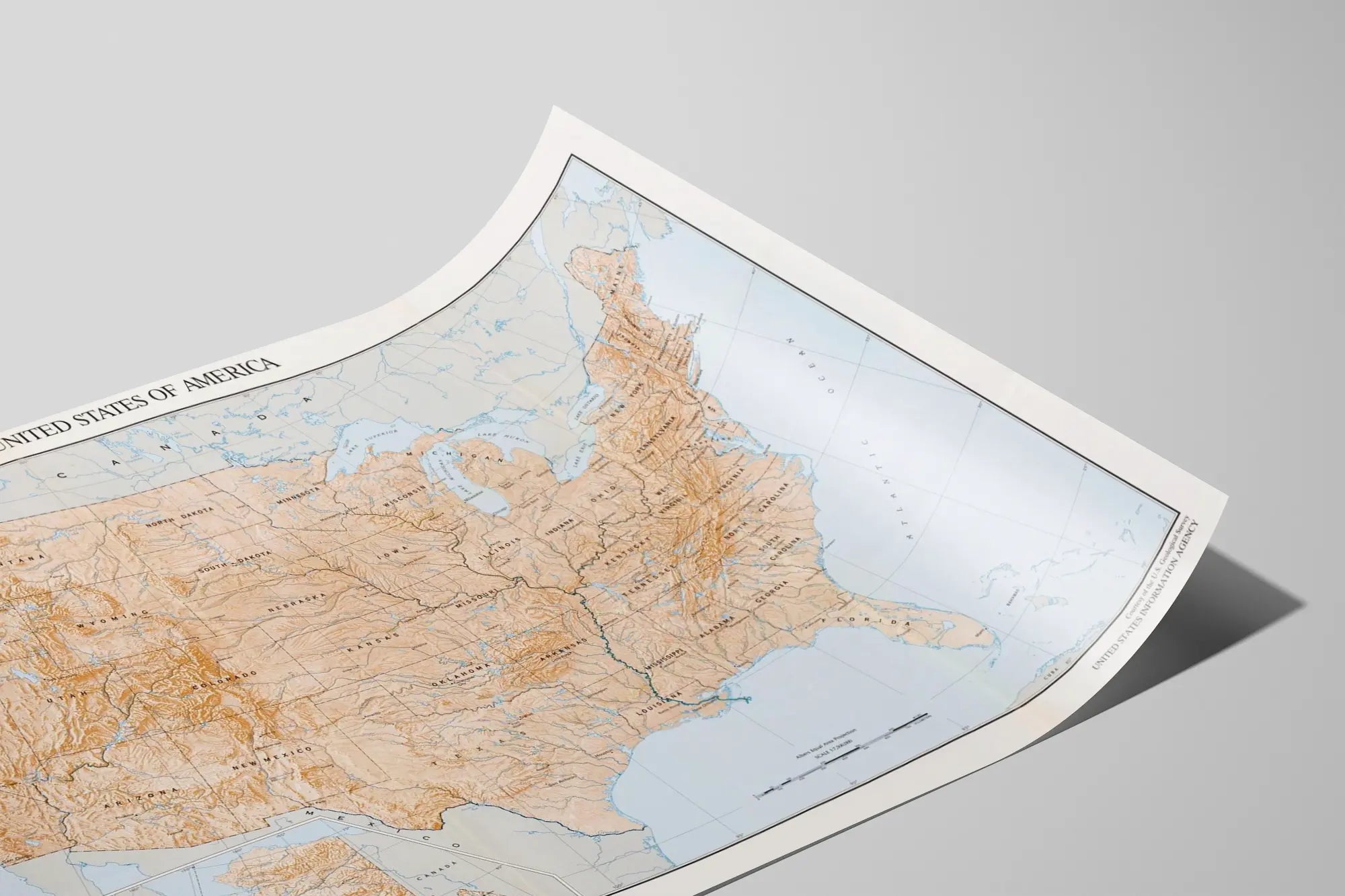 Reliefkaart van de Verenigde Staten van Amerika - Gedetailleerde geografische poster