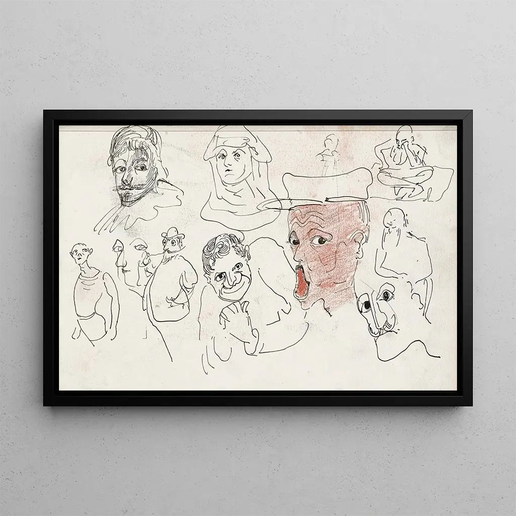 Gezichts-karikaturen: een spel van expressieve en kleurrijke gezichten De Gezichts-karikaturen van Carel Adolph Lion Cachet zijn een viering van menselijke expressie door middel van overdreven vormen en felle kleuren. Elk gezicht, met zijn benadrukte trekken, roept een unieke persoonlijkheid op, bijna levend. De techniek van de kunstenaar, die aquarel en inkt combineert, creëert een speelse en dynamische sfeer die de kijker uitnodigt om de emoties en verhalen achter elke karikatuur te verkennen. De compositie, vaak asymmetrisch, versterkt het idee van beweging en levendigheid, waardoor elk kunstwerk verandert in een levendige scène vol leven. Carel Adolph Lion Cachet: een pionier in design en illustratie Carel Adolph Lion Cachet, geboren in 1864 in Nederland, wordt erkend om zijn rol in de ontwikkeling van grafisch ontwerp aan het begin van de 20e eeuw. Geïnspireerd door de Art Nouveau-beweging, wist hij esthetiek en functionaliteit te combineren in zijn werken. Zijn werk, hoewel minder bekend dan dat van zijn tijdgenoten, markeerde zijn tijd door zijn vermogen om de geest van de samenleving vast te leggen via karaktervolle illustraties. Cachet heeft ook bijgedragen aan boekillustraties en decorontwerp, waardoor hij een belangrijke figuur is in de wereld van toegepaste kunst. Een decoratieve aanwinst met vele voordelen De kunstdruk van de Gezichts-karikaturen is een ideale keuze voor wie een vleugje originaliteit aan hun interieur wil toevoegen. Of het nu in een woonkamer, kantoor of slaapkamer is, dit kunstwerk trekt de aandacht en stimuleert gesprekken. De kwaliteit van de kunstdruk garandeert een trouwheid aan de kleuren en details van het originele werk, terwijl het een onmiskenbare esthetische aantrekkingskracht biedt. Door deze doek in uw decoratie te integreren, brengt u een vleugje creativiteit en vreugde, waardoor uw ruimte verandert in een plek van inspiratie en visueel plezier.