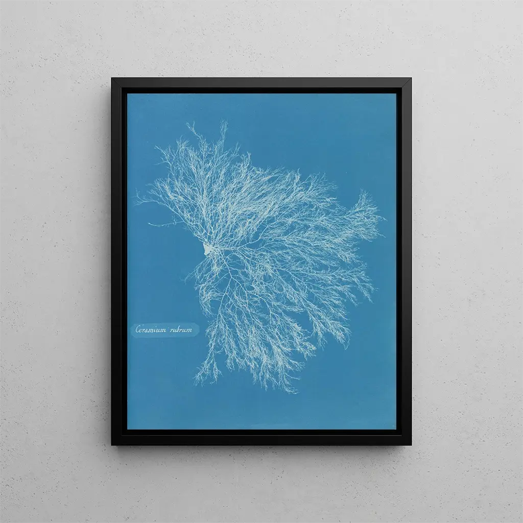 Reproductie Keramiek rood - Anna Atkins – Boeiende introductie De rode keramiek van Anna Atkins vertegenwoordigt veel meer dan een eenvoudig kunstwerk; het belichaamt een ontmoeting tussen wetenschap en esthetiek, een harmonieuze fusie van de natuur en menselijke creativiteit. Dit stuk, dat deel uitmaakt van de beweging van de eerste fotografen, is het resultaat van een gepassioneerde verkenning van botanica en licht. Anna Atkins, pionier in het gebruik van cyanotypie, wist de delicate vormen van de natuur vast te leggen en ze tegelijkertijd artistiek te herinterpreteren. De kunstdruk Keramiek rood - Anna Atkins wekt interesse en nodigt uit tot reflectie over hoe kunst de tijd en ruimte kan overstijgen, en verborgen waarheden over onze relatie met de natuur onthult. Stijl en uniekheid van het werk De Keramiek rood onderscheidt zich door het gedurfde gebruik van kleur en textuur. Diepe tinten rood, die de aarde en elementen oproepen, mengen zich met delicate patronen die de organische vormen van planten herinneren. Deze chromatische keuze is niet toevallig: het roept vitaliteit en passie op, terwijl het de intrinsieke schoonheid van de natuurlijke wereld viert. De cyanotypietechniek, gebruikt door Atkins, maakt het mogelijk om beelden van zeldzame fijnheid te creëren, waarbij elk detail wordt benadrukt door een subtiel spel van licht. Het werk ontvouwt zich als een visueel gedicht, dat de kijker een meeslepende ervaring biedt die de eenvoudige contemplatie overstijgt. De diepte van de kleuren en de rijkdom van de patronen maken van deze keramiek een waar getuigenis van de harmonie tussen kunst en natuur. De kunstenaar en haar invloed Anna Atkins, vaak erkend als de eerste vrouwelijke fotograaf, heeft de kunstgeschiedenis beïnvloed door haar inzet voor wetenschap en innovatie. Geboren in 1799, werd ze beïnvloed door haar vader, een gerespecteerde botanicus, die haar een passie voor observatie en studie van planten bijbracht. Haar werk beperkt zich niet tot keramiek; ze publiceerde ook geïllustreerde boeken over planten, waarbij ze cyanotypie gebruikte om de schoonheid van botanische specimens te vereeuwigen. Haar vernieuwende aanpak opende de weg voor vele kunstenaars en wetenschappers, en creëerde een dialoog tussen kunst en wetenschap die nog steeds weerklank vindt. De invloed van