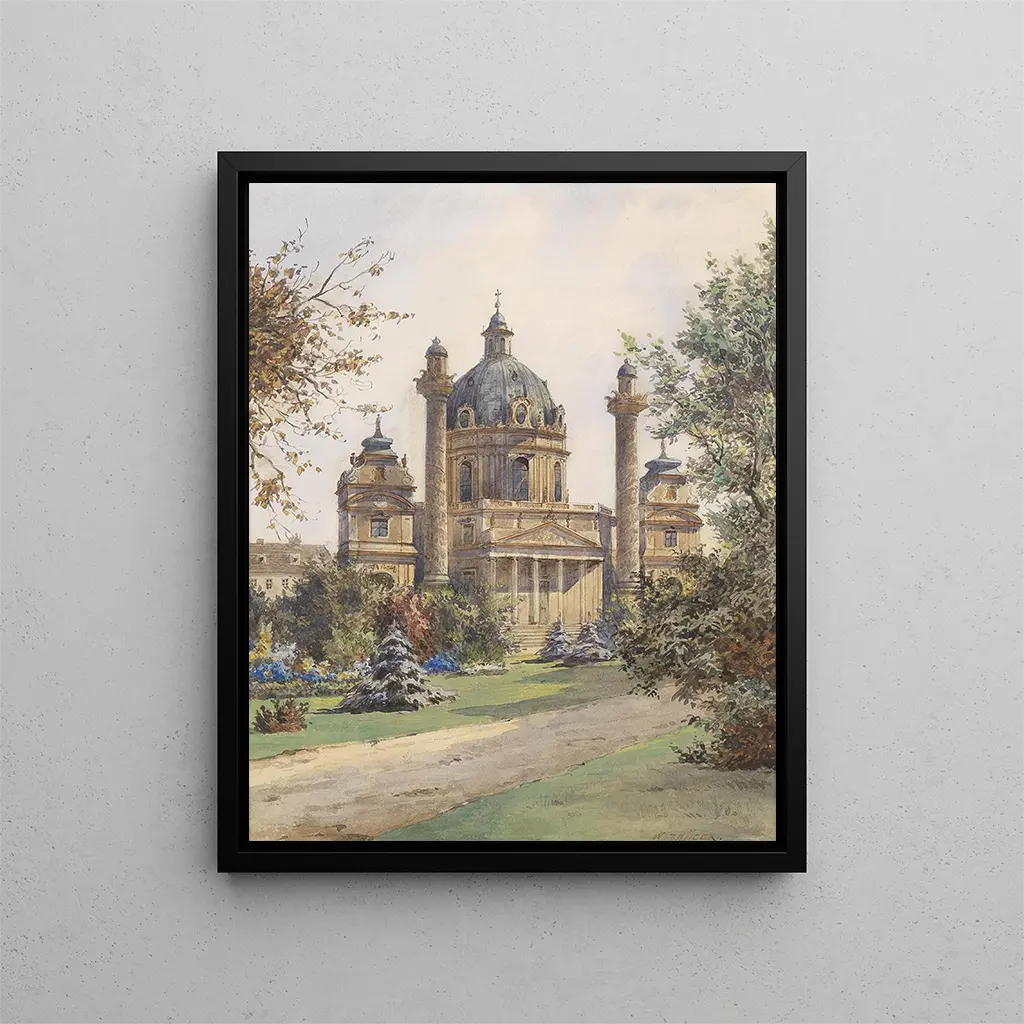 Kunstdruk Église Saint-Charles de Vienne - Carl Wenzel Zajicek – Introductie boeiend L'œuvre "Église Saint-Charles de Vienne" de Carl Wenzel Zajicek est bien plus qu'une simple représentation d'un monument architectural. Elle incarne une vision artistique riche, où l'âme de la ville de Vienne se mêle à la beauté intemporelle de l'édifice. Ce tableau, à la fois vibrant et contemplatif, invite le spectateur à un voyage dans le temps, où l'histoire et la culture se rencontrent. Zajicek, par son talent indéniable, réussit à capturer l'essence même de cet édifice emblématique, offrant une perspective unique sur la majesté de la baroque viennoise. Style et singularité de l’œuvre L'œuvre se distingue par son utilisation subtile de la lumière et des ombres, créant une atmosphère presque sacrée qui enveloppe l'église. Les tons chauds et les nuances délicates de la palette chromatique évoquent la richesse des matériaux utilisés dans la construction de l'église, tout en ajoutant une dimension émotionnelle à la scène. Zajicek parvient à marier réalisme et lyrisme, donnant vie à chaque détail architectural tout en insufflant une spiritualité palpable. Les lignes fluides et les formes harmonieuses témoignent de son habileté à traduire la grandeur de l'architecture baroque tout en préservant une certaine intimité. Cette œuvre se veut un hommage à la beauté de la création humaine, tout en révélant la profondeur de la foi qui anime cet espace sacré. L’artiste et son influence Carl Wenzel Zajicek, bien que moins connu que certains de ses contemporains, a su s'imposer par son style distinctif et sa sensibilité artistique. Né à Vienne, il a été profondément influencé par l'architecture de sa ville natale, ainsi que par les grands maîtres de la peinture baroque. Son œuvre est marquée par une recherche constante de la beauté et de l'harmonie, que l'on retrouve dans ses représentations d'édifices religieux et de paysages urbains. Zajicek a également été un observateur attentif de la vie quotidienne, ce qui lui a permis d'intégrer des éléments de la culture viennoise dans ses créations. Son influence perdure à travers les générations, inspirant de nombreux artistes à explorer les liens entre l'architecture et l'art pictural